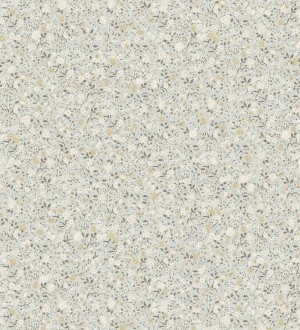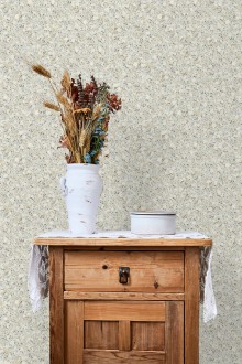 Papel pintado de flores pequeñas con textura entelada en colores azul y gris fondo blanco