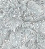 Papel pintado de hojas tropicales de colores metalizados y fondo azul petróleo -