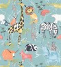 Papel pintado selva minimalista animales y palmeras blanco fondo beige
