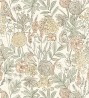 Papel pintado de flores silvestres celeste turquesa coral sobre fondo beige con textura -