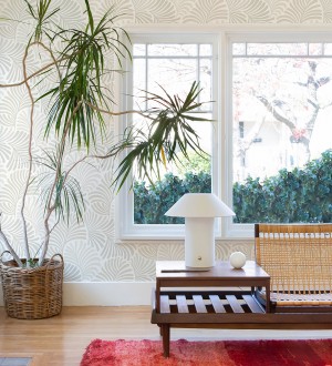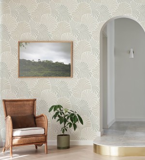 Papel pintado para pared de hojas estilo retro colores beige y gris claro Amara Palms 683827