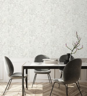 Papel pintado botánico con grandes hojas de estilo étnico colores negro y blanco -