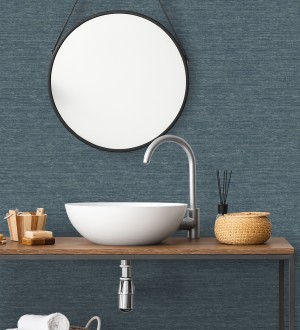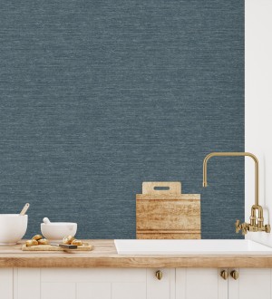 Papel pintado para pared textura mixta lino y seda tonos azules oscuros Basilea Linen 683688