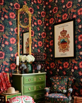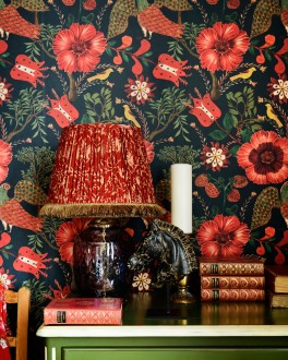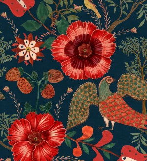 Papel pintado para pared jardín de flores grandes rojas y pájaros Beth Flowers 128284