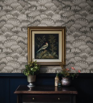 Papel pintado para pared caleidoscopio de ondas tonos gris visón Bloomsbury 683738