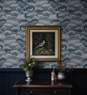 Papel pintado para pared caleidoscopio de ondas tonos azules Bloomsbury 683739