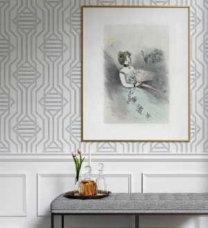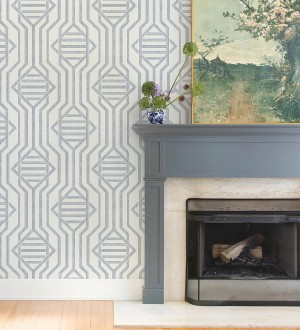 Papel pintado para pared laberinto pictórico azul y blanco Cambridge Symmetry 683763