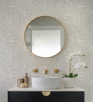 Papel pintado para pared abstracto de ondas orgánicas color nácar y beige Caspian Waves 683891
