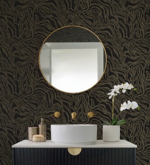 Papel pintado para pared abstracto de ondas orgánicas color dorado y negro Caspian Waves 683894