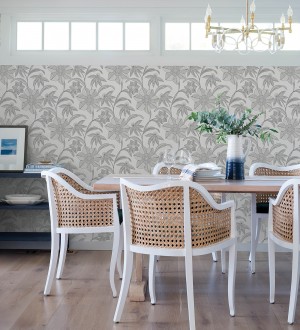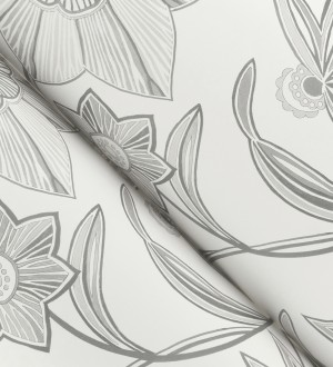 Papel pintado para pared de flores de trazo lírico en gris visón Clara Bloom 683974