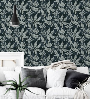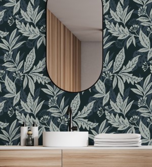 Papel pintado para pared artesanal de hojas estampadas con pintura Claridge Opaline 683857