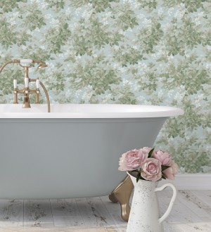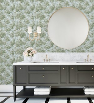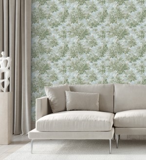 Papel pintado para pared bosque frondoso tonos verde y azul pastel Cotswold Foliage 683779