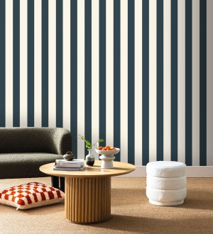 Podrás localizar el Papel pintado de rayas tonos azul medianoche con líneas finas doradas Diana Stripes 684575 en la sección de estilo vintage, o en función de su patrón decorativo en el apartado rayas normales.