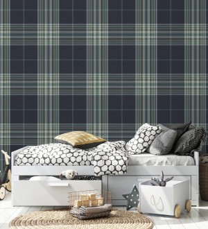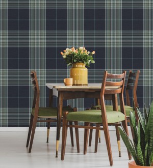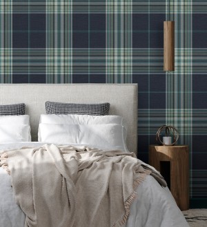 Papel pintado para pared de cuadros escoceses con textura textil tonos azules y verdes Edinburgh Glencheck 683746