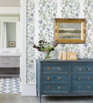 Papel pintado para pared flores acuarela con colores azules y verdes Giverny Painterly 683758