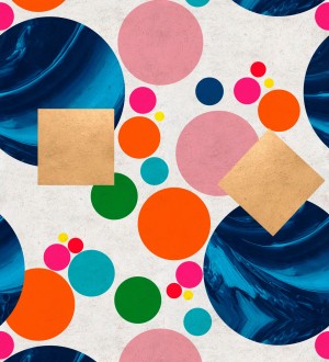 Papel pintado para pared geométrico círculos y cuadrados de colores fondo claro Ironic 128094