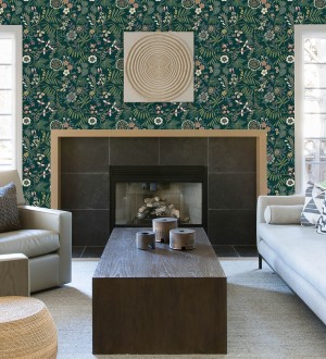 Papel pintado para pared botánico con flores pintadas en técnica de puntillismo Jasmine Grove 683837