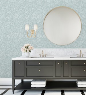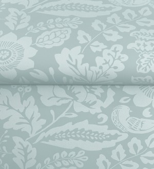 Papel pintado para pared jardín romántico con pájaros color celeste Kelmscott Folklore 683723