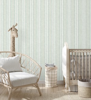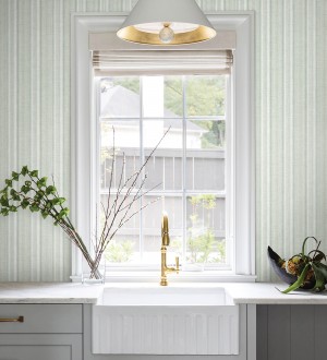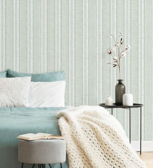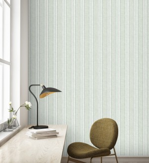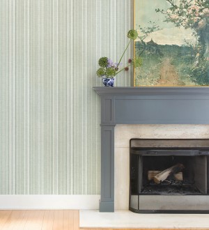 Papel pintado para pared rayas lino verde salvia y azul suave Kensington Pinstripe 683755