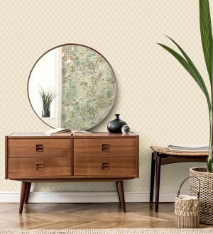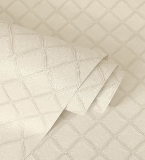 Papel pintado para pared de rombos de capitone bordados en relieve tonos beige Kensington Quilted 683648