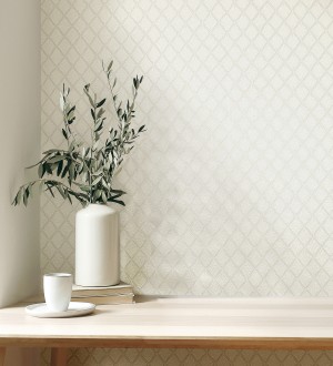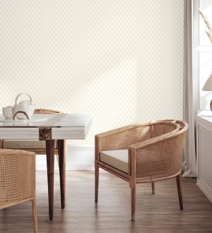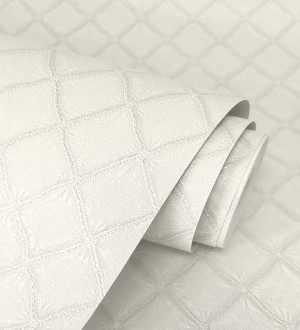 Papel pintado para pared de rombos de capitone bordados en relieve tonos blanco roto Kensington Quilted 683649