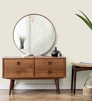 Papel pintado geométrico de rombos con líneas doradas fondo marrón pardo estilo Art déco