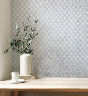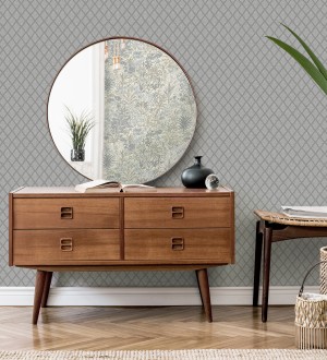 Papel pintado para pared de rombos de capitone bordados en relieve tonos metalizados Kensington Quilted 683650