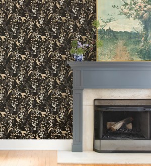 Papel pintado para pared monos en la selva y frutos rojos fondo negro Luanda Monkey 683781