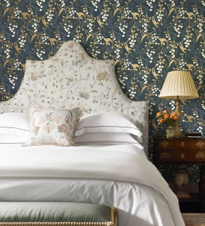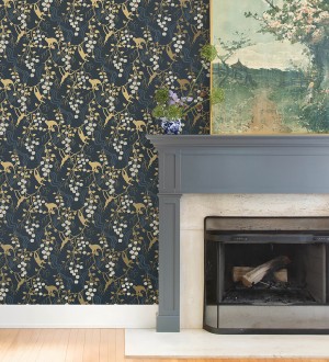 Papel pintado para pared monos en la selva y frutos rojos fondo azul Luanda Monkey 683782