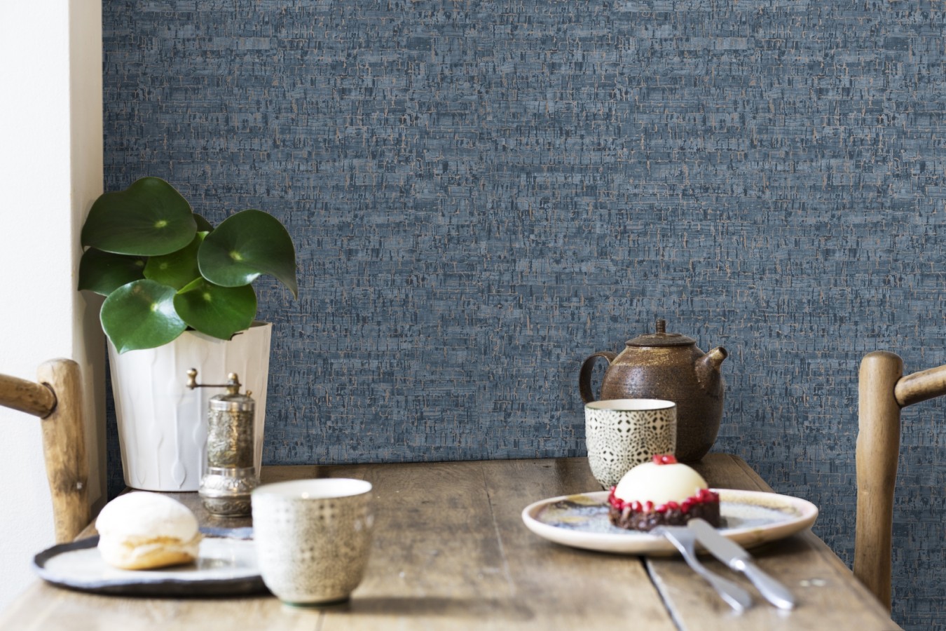 Puedes encontrar el Papel pintado imitación corcho texturizado tonos azules Mileto 679350 en la categoría de estilo rústico.