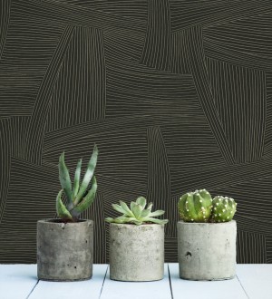 Papel pintado para pared de líneas abstractas fondo negro Miller Interweave 683862