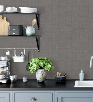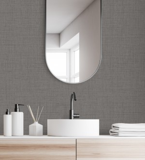 Papel pintado para pared efecto lino fondo gris carbón textura en relieve blando Neville Texture 683629