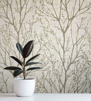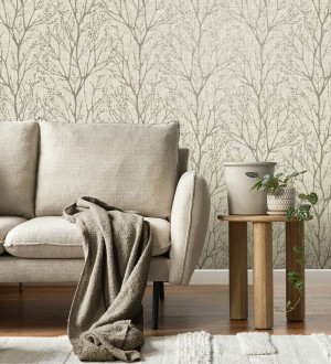 Papel pintado para pared de ramas estilo nórdico tonos beige Oregon Arboreal 683638