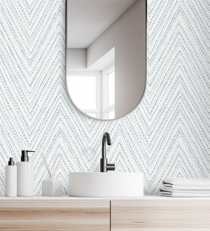 Papel pintado para pared de espigas azul mediterráneo efecto textil bordado Pembroke Woven 683728