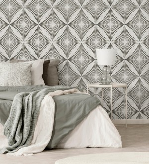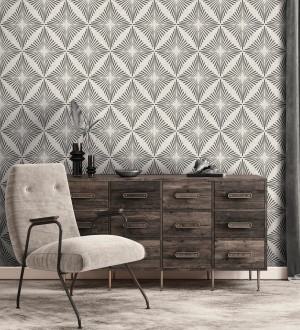 Papel pintado para pared de rombos negros estilo Art Déco Polaris Diamond 683625