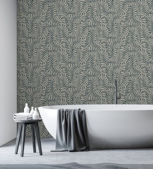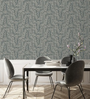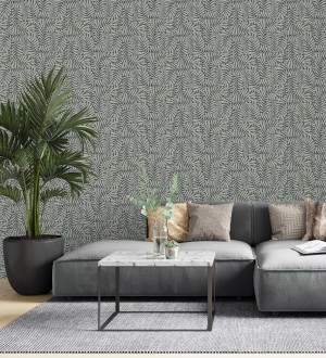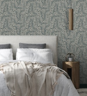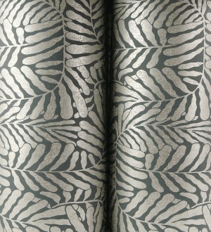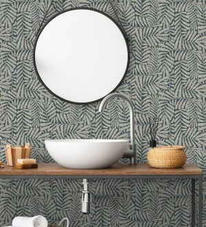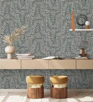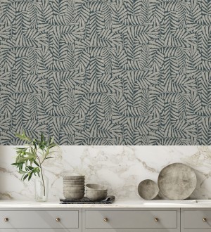 Papel pintado para pared minimalista de hojas nacaradas fondo azul plomo Riviera Opulent 683845