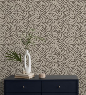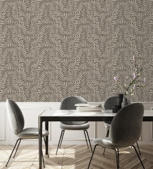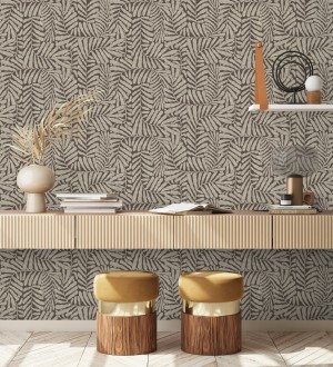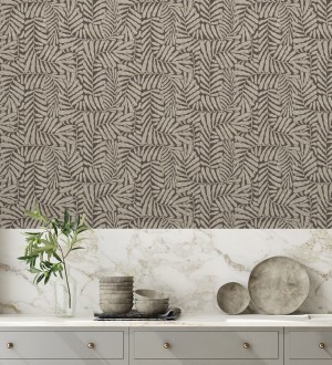 Papel pintado para pared minimalista de hojas nacaradas fondo marrón Riviera Opulent 683846