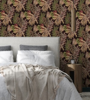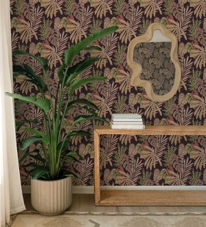 Papel pintado para pared selva nocturna color rojo amarronado Samba Ethnic 683923