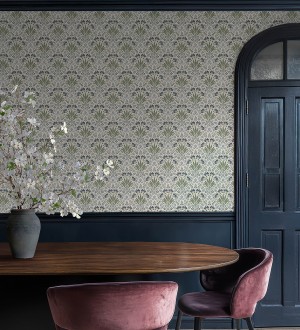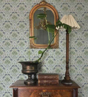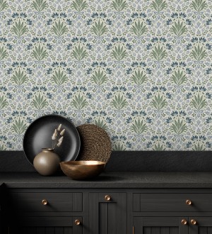 Papel pintado para pared damasco botánico verde y azul Scott Morrisian 683671