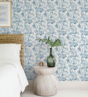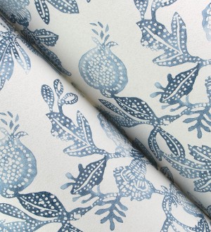 Papel pintado para pared de flores y granadas tonos azules Sienna Floral 683952