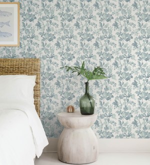 Papel pintado para pared de flores y granadas tonos verdes Sienna Floral 683954