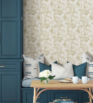 Papel pintado para pared de flores y granadas tonos mostaza Sienna Floral 683955
