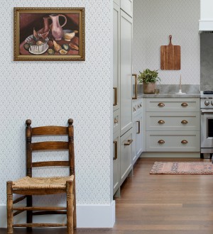 Papel pintado para pared rombos sobre lienzo diseño ikat tonos azul Skye Trellis 683710