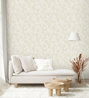 Papel pintado para pared hojas ginkgo biloba color nácar y arena Sofia Leaves 683896