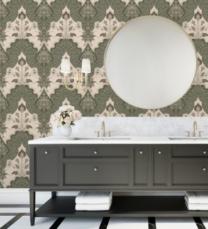 Papel pintado para pared jardín teatral otomano fondo verde Stowe Lacework 683751