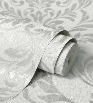 Papel pintado para pared damasco color plata en relieve Verona Romantic 683634
