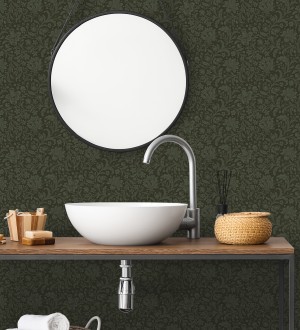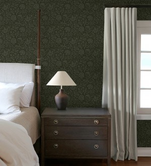 Papel pintado para pared floral con hojas estilo vintage fondo verde oscuro Waverly Ornate 683667