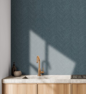 Papel pintado para pared de espigas tejido en hilo noble tonos azul oscuro York Spike 683855