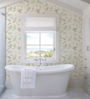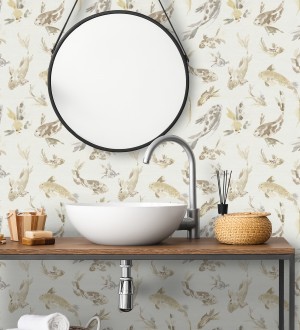 Papel pintado para pared de peces koi tonos beige y estilo japonés fondo nácar Yoshi Lucky 683961